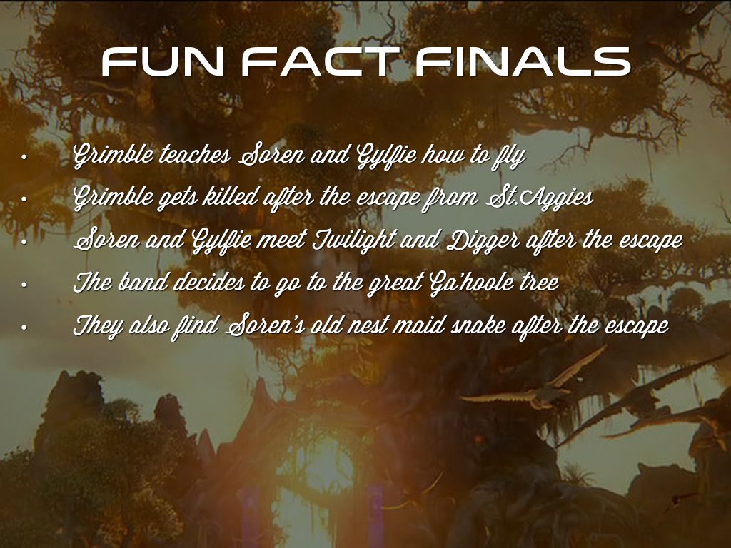 Main characters:Soren, Gylfie, Twilight, and Digger