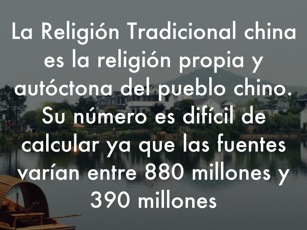 La Religión Tradicional china es la religión propia y autóctona del pueblo chino. Su número es difícil de calcular ya que las fuentes varían entre 880 millones y 390 millones