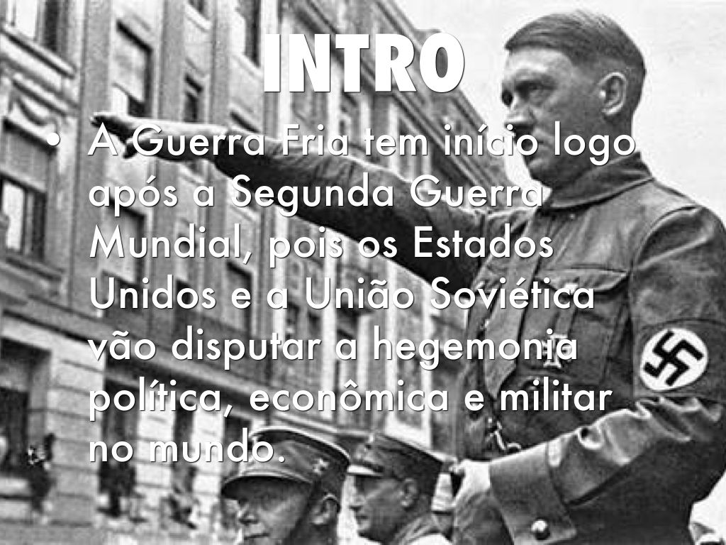 A Guerra Fria tem início logo após a Segunda Guerra Mundial, pois os Estados Unidos e a União Soviética vão disputar a hegemonia política, econômica e militar no mundo.