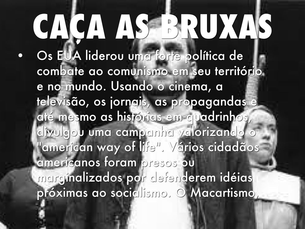 Os EUA liderou uma forte política de combate ao comunismo em seu território e no mundo. Usando o cinema, a televisão, os jornais, as propagandas e até mesmo as histórias em quadrinhos, divulgou uma campanha valorizando o "american way of life". Vários cidadãos americanos foram presos ou marginalizados por defenderem idéias próximas ao socialismo. O Macartismo, comandado pelo senador republicano Joseph McCarthy, perseguiu muitas pessoas nos EUA.
