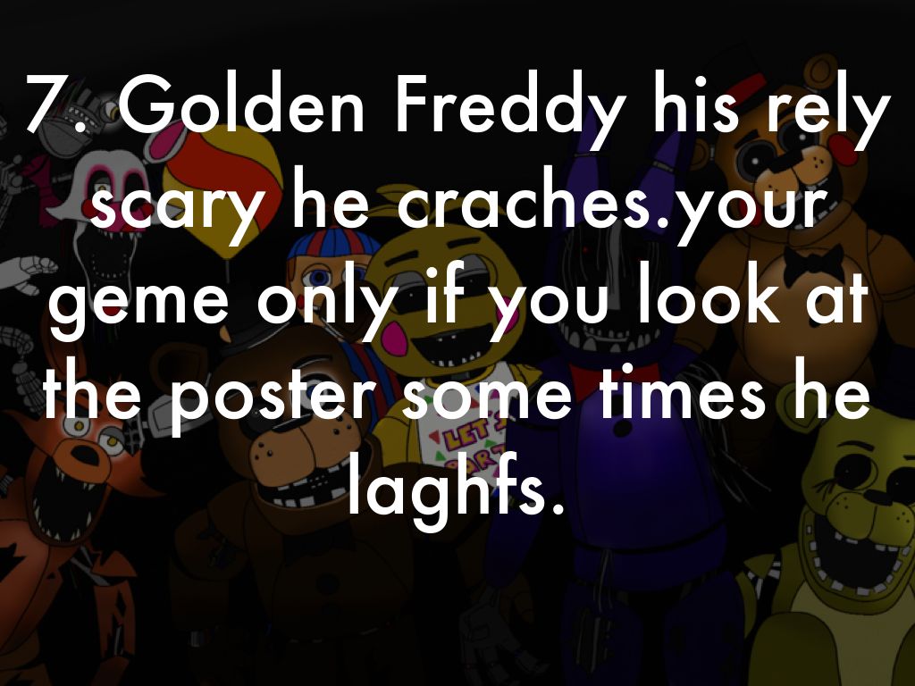 7. Golden Freddy his rely scary he craches.your geme only if you look at the poster some times he laghfs.