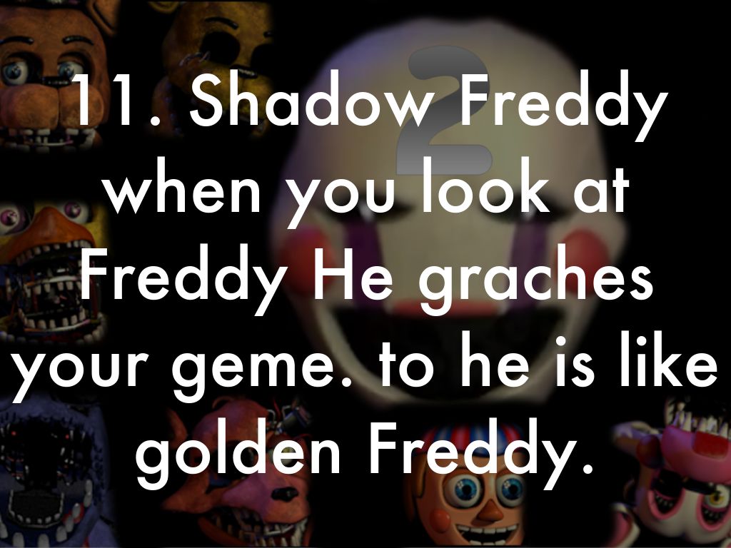 11. Shadow Freddy when you look at Freddy He graches your geme. to he is like golden Freddy.