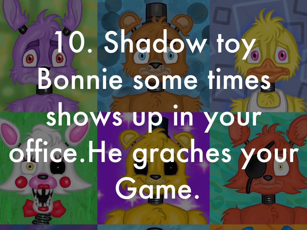 10. Shadow toy Bonnie some times shows up in your office.He graches your Game.
