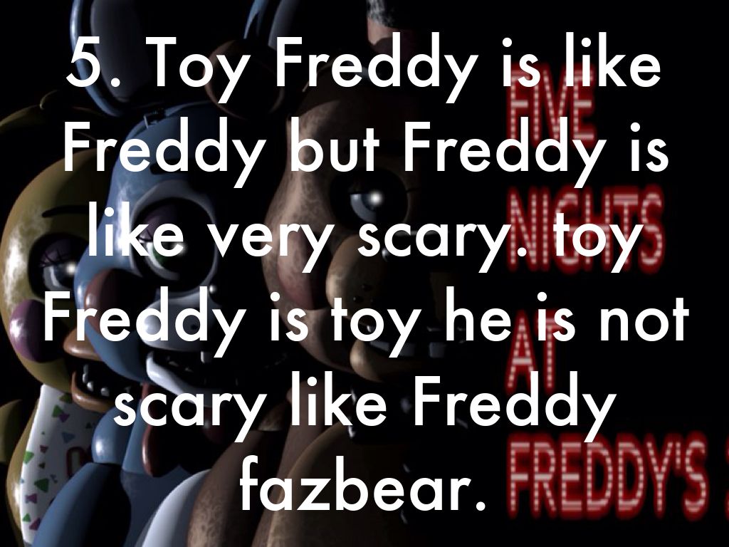 5. Toy Freddy is like Freddy but Freddy is like very scary. toy Freddy is toy he is not scary like Freddy fazbear.