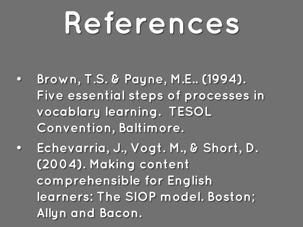Marzano, R. Pickering, D., & Pollock, J. (2001). Classroom instruction that works: Research-based strategies for increasing student achievement. Upper Saddle River, NJ; Pearson.