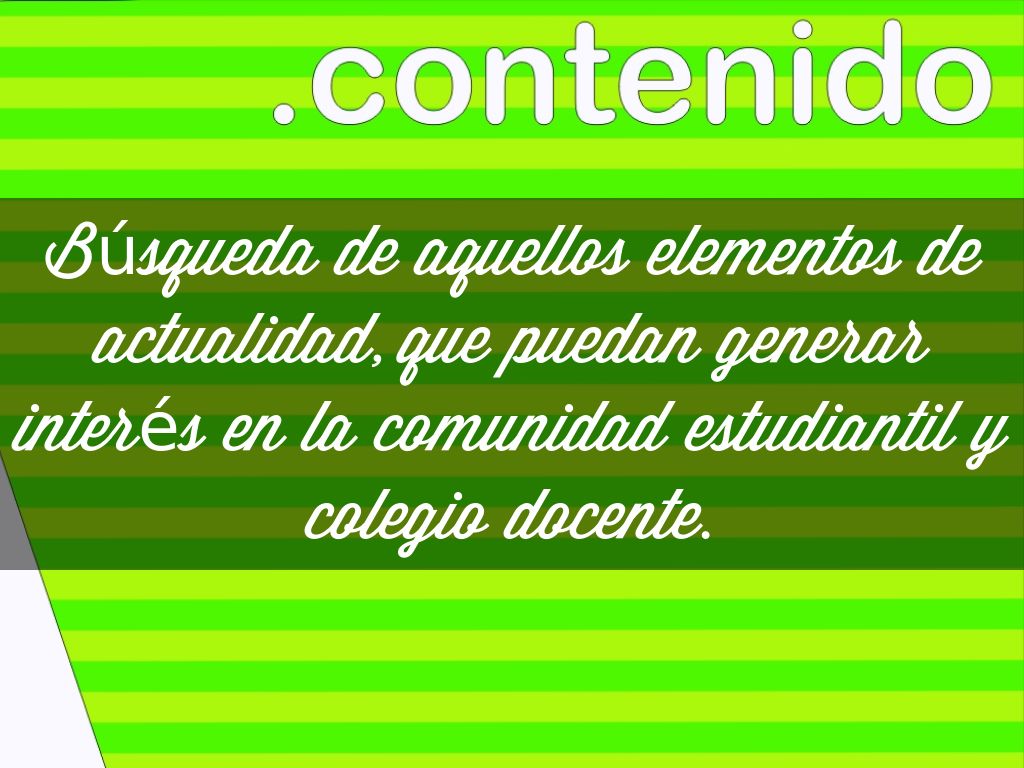 Búsqueda de aquellos elementos de actualidad, que puedan generar interés en la comunidad estudiantil y colegio docente.