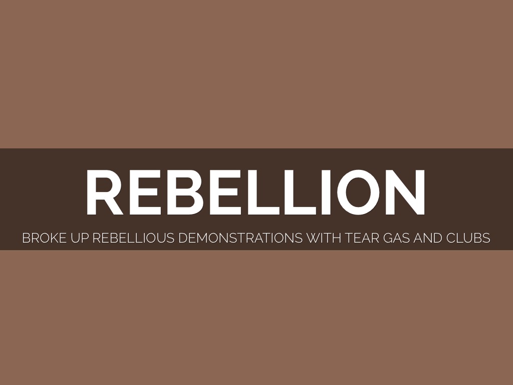 BROKE UP REBELLIOUS DEMONSTRATIONS WITH TEAR GAS AND CLUBS