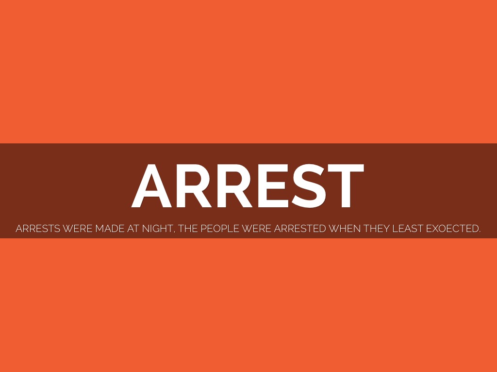 ARRESTS WERE MADE AT NIGHT, THE PEOPLE WERE ARRESTED WHEN THEY LEAST EXOECTED.