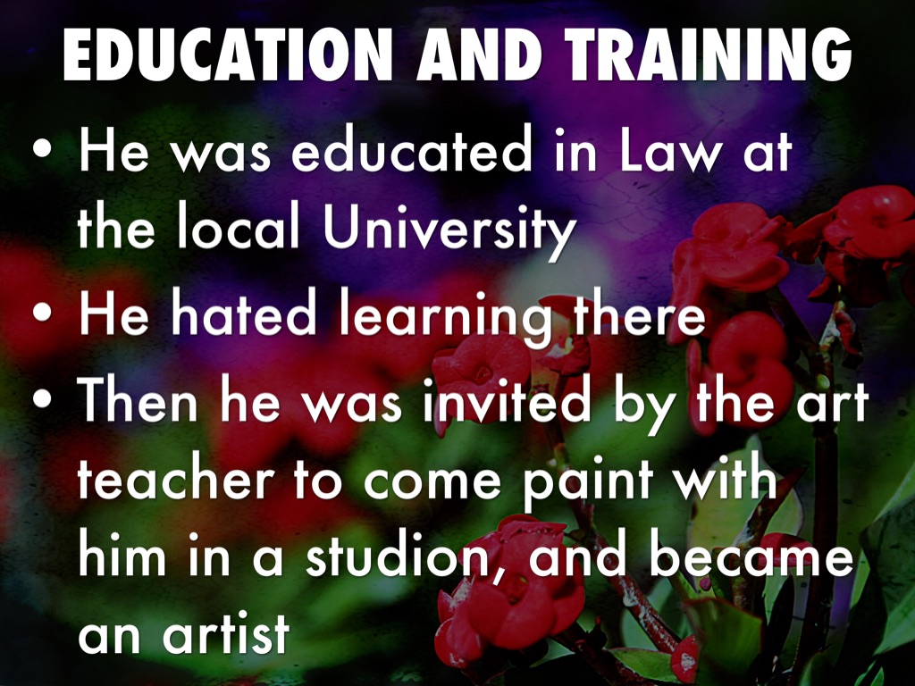 Then he was invited by the art teacher to come paint with him in a studion, and became an artist