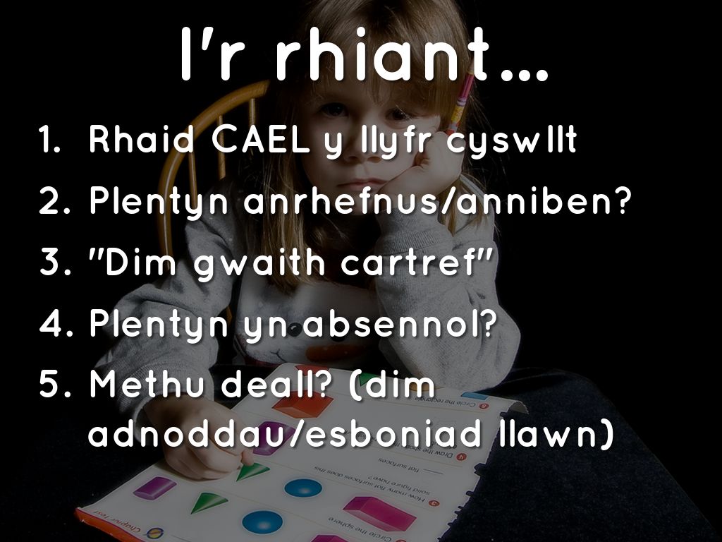 Plant sy'n absennol/tiwtora yn y cartref/gwaharddiadau ...