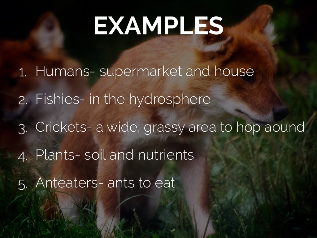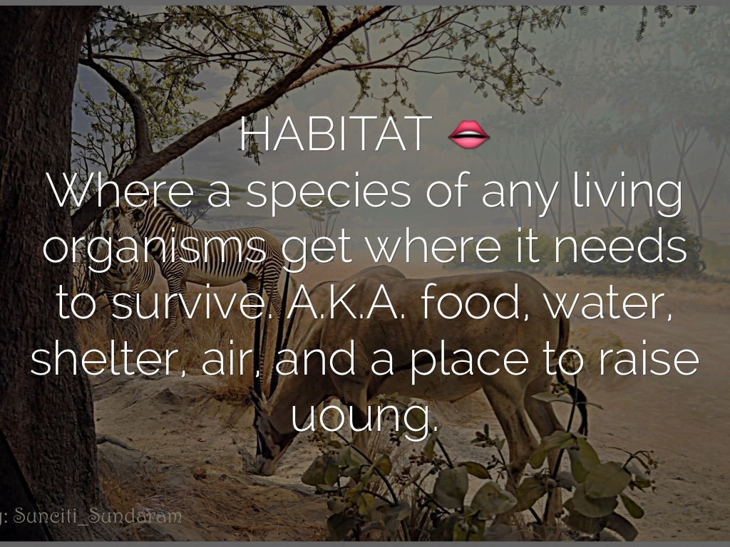 Where a species of any living organisms get where it needs to survive. A.K.A. food, water, shelter, air, and a place to raise uoung.