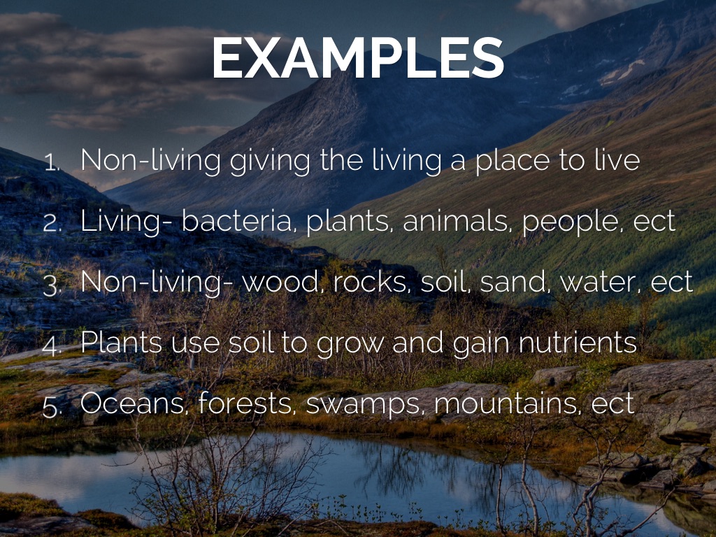 Non-living- wood, rocks, soil, sand, water, ect