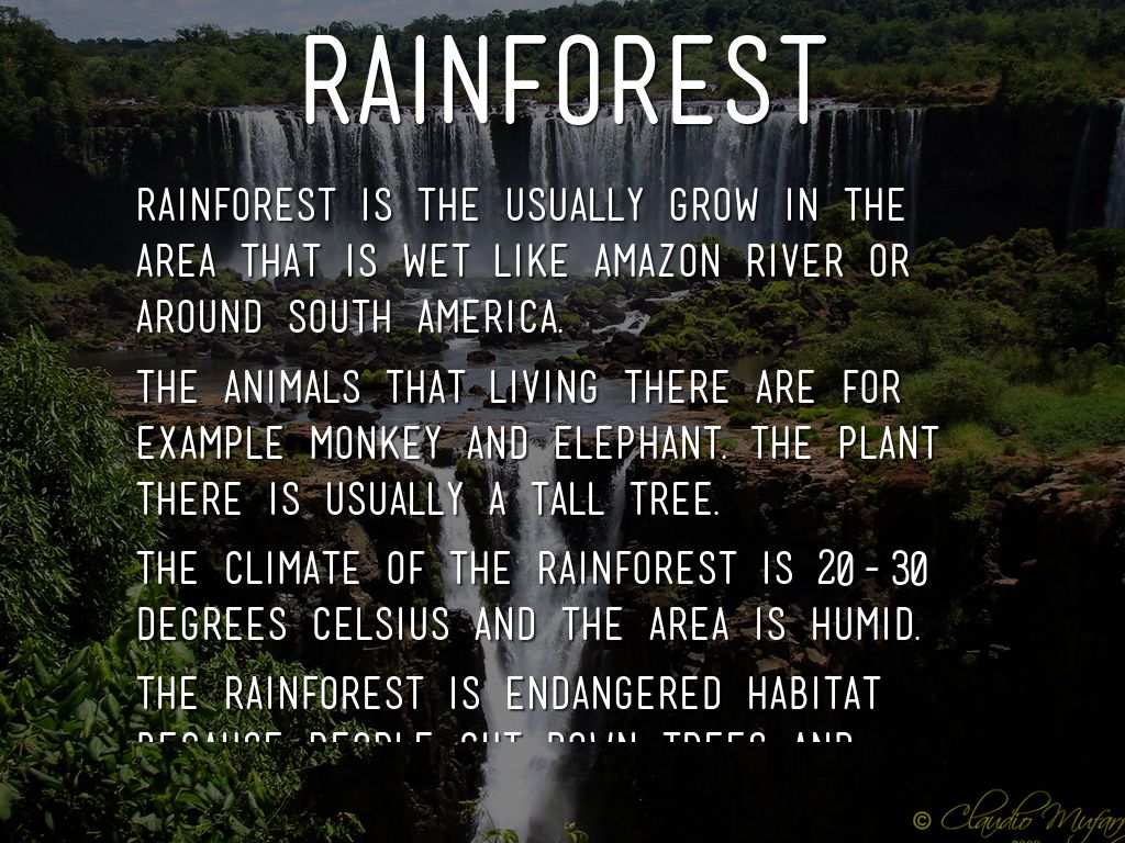 Rainforest is the usually grow in the area that is wet like Amazon River or around South America.