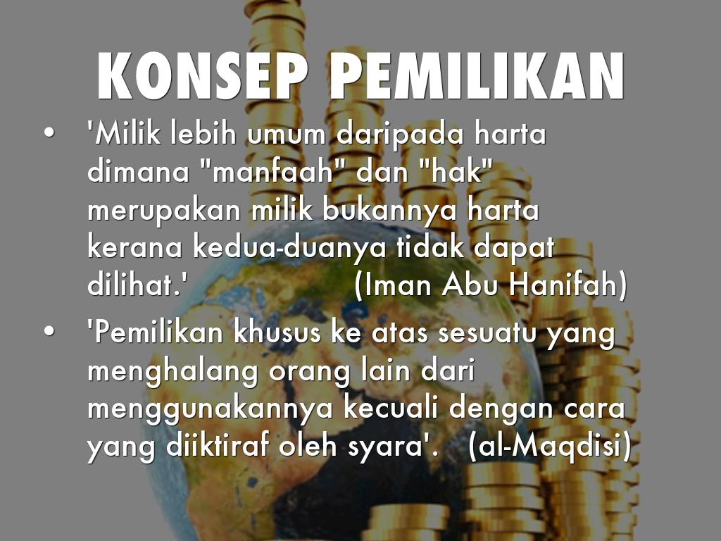 'Milik lebih umum daripada harta dimana "manfaah" dan "hak" merupakan milik bukannya harta kerana kedua-duanya tidak dapat dilihat.' (Iman Abu Hanifah)