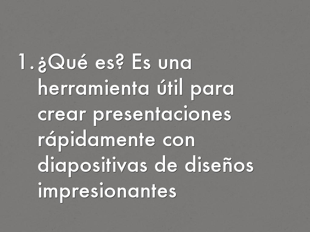 • ¿Qué es? Es una herramienta útil para crear presentaciones rápidamente con diapositivas de diseños impresionantes