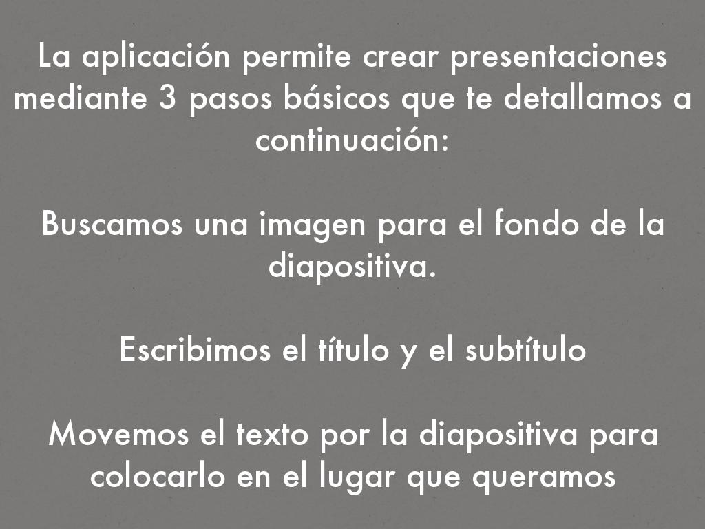 La aplicación permite crear presentaciones mediante 3 pasos básicos que te detallamos a continuación: