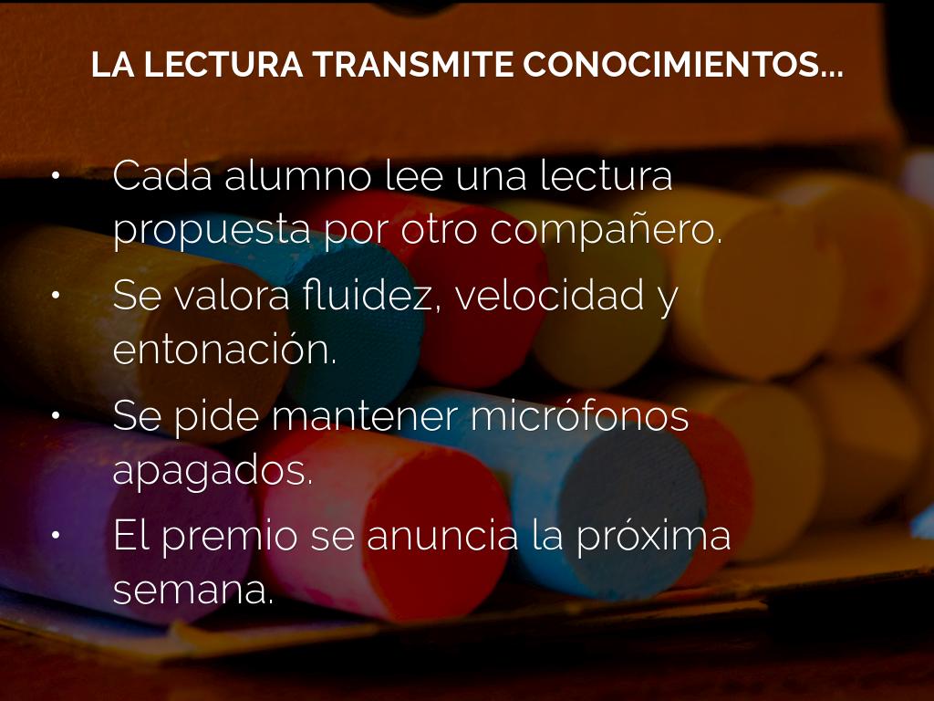 LA LECTURA TRANSMITE CONOCIMIENTOS...