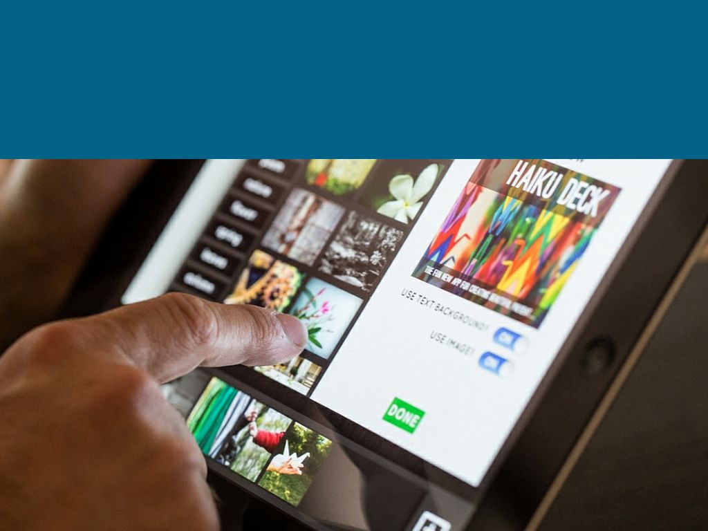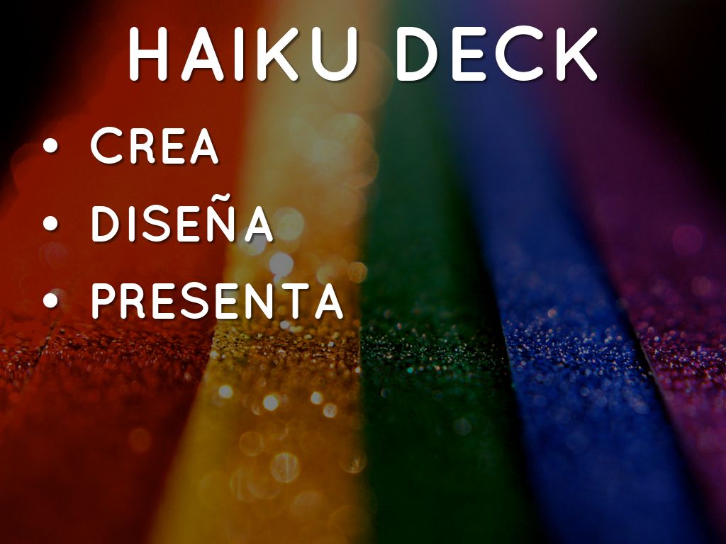 HAIKU DECK OFRECE LA POSIBILIDAD DE CONSTRUIR DIAPOSITIVAS MINIMALISTAS FORMADAS POR UNA IMAGEN DE FONDO, TITULO Y UN SUBTITULO.
