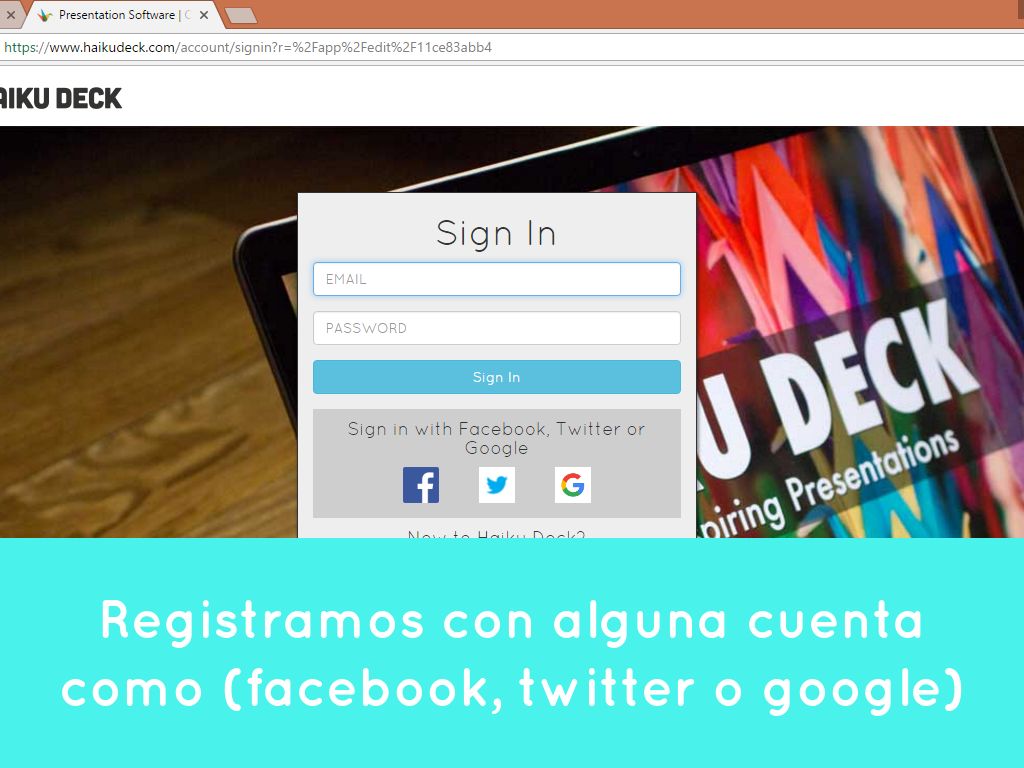 Registramos con alguna cuenta como (facebook, twitter o google)
