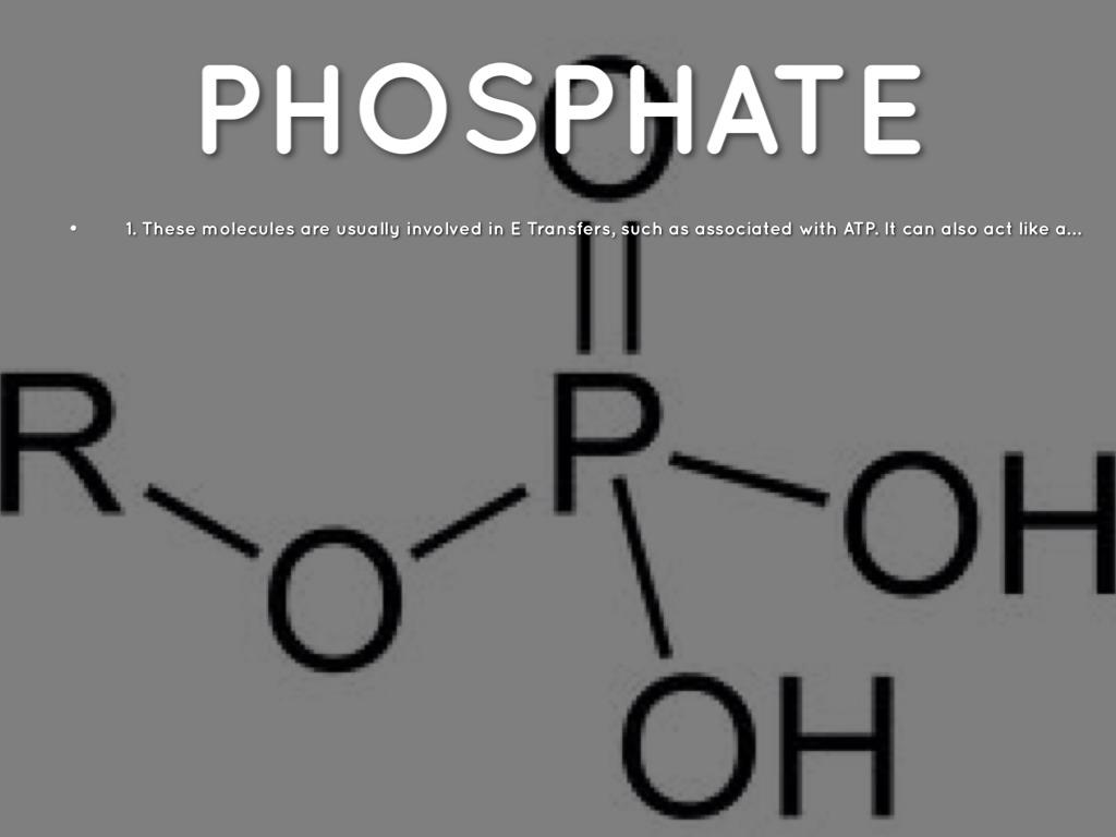 1. These molecules are usually involved in E Transfers, such as associated with ATP. It can also act like an Anion, a negative ion.