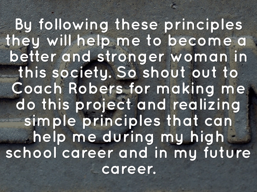 By following these principles they will help me to become a better and stronger woman in this society. So shout out to Coach Robers for making me do this project and realizing simple principles that can help me during my high school career and in my future career.