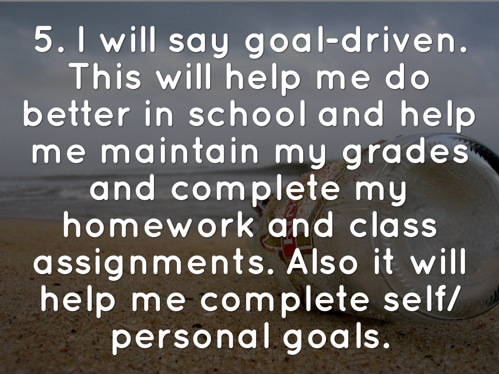 5. I will say goal-driven. This will help me do better in school and help me maintain my grades and complete my homework and class assignments. Also it will help me complete self/ personal goals.
