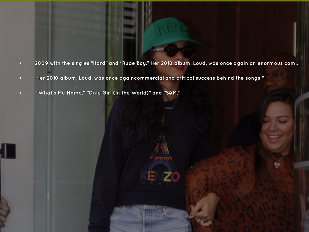 2009 with the singles "Hard" and "Rude Boy." Her 2010 album, Loud, was once again an enormous commercial and critical success behind