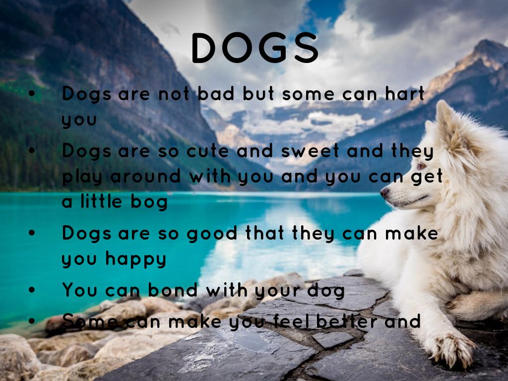 Dogs are so cute and sweet and they play around with you and you can get a little bog
