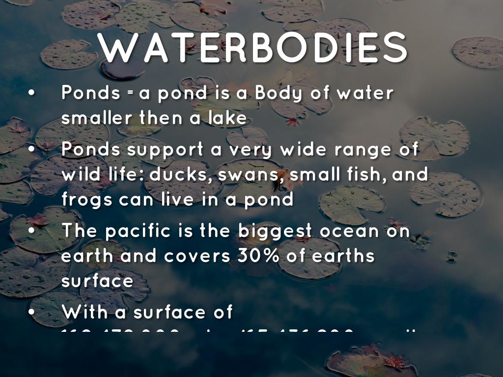 Ponds support a very wide range of wild life: ducks, swans, small fish, and frogs can live in a pond