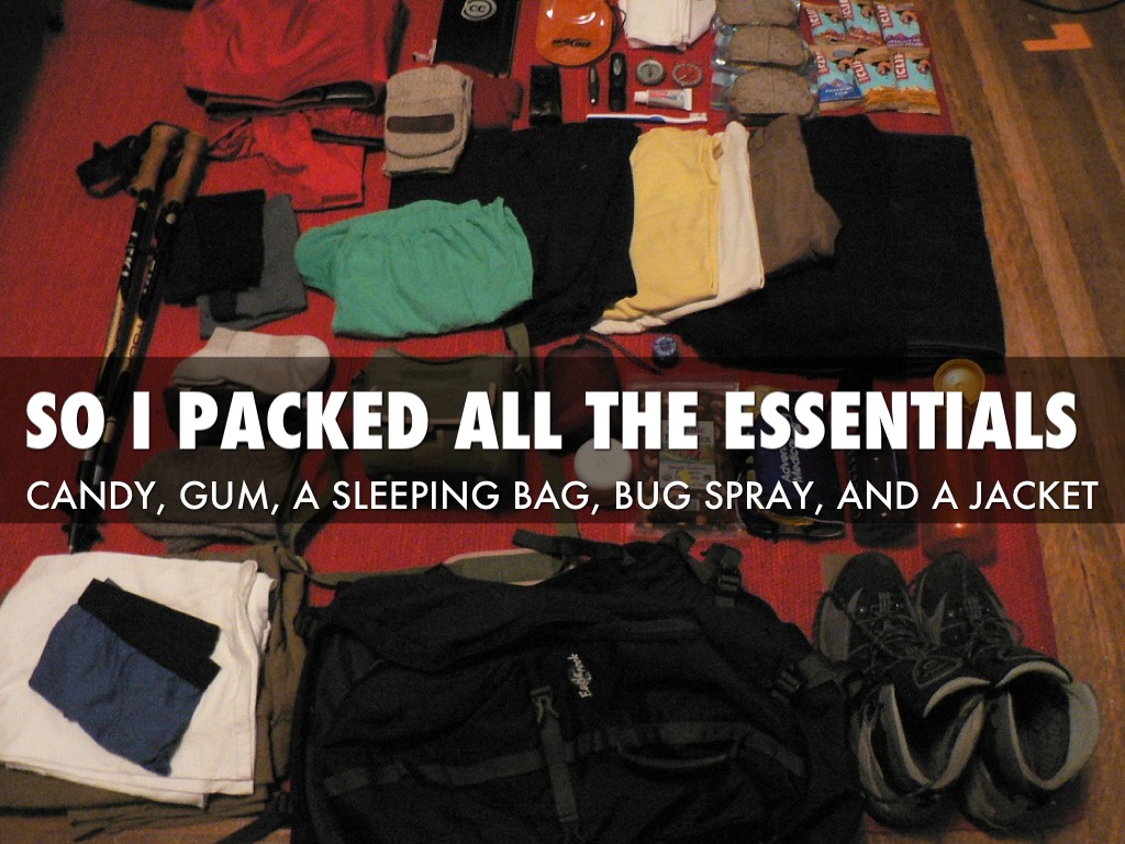 CANDY, GUM, A SLEEPING BAG, BUG SPRAY, AND A JACKET