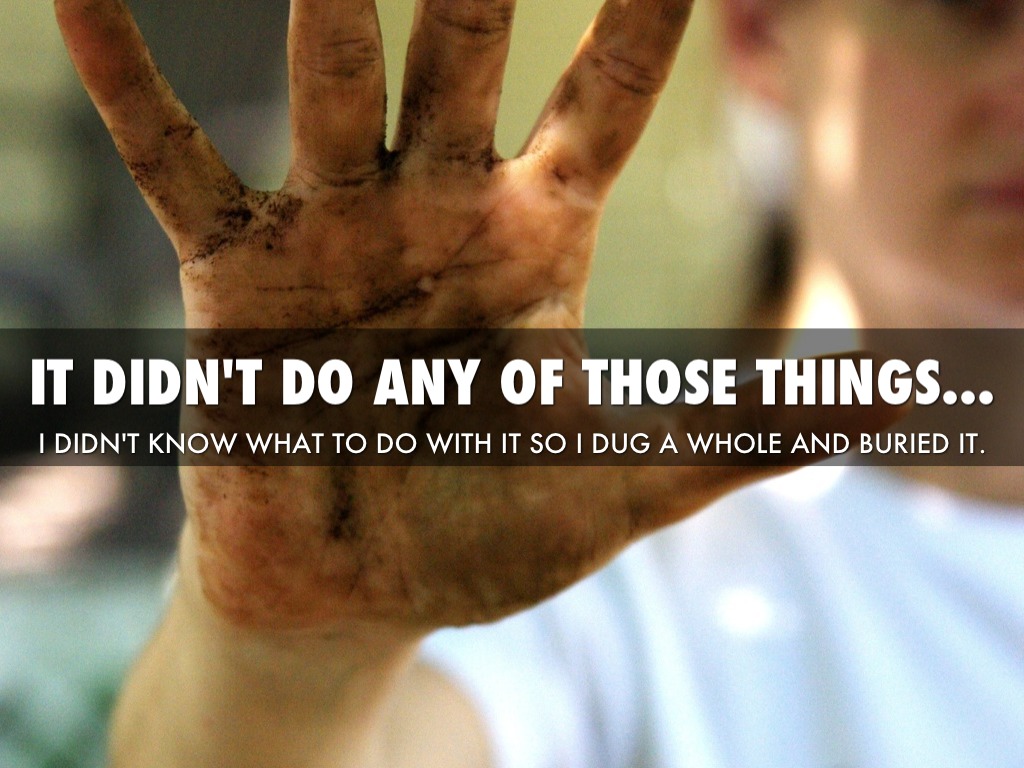 I DIDN'T KNOW WHAT TO DO WITH IT SO I DUG A WHOLE AND BURIED IT.