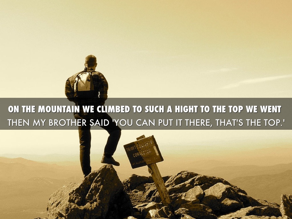 ON THE MOUNTAIN WE CLIMBED TO SUCH A HIGHT TO THE TOP WE WENT