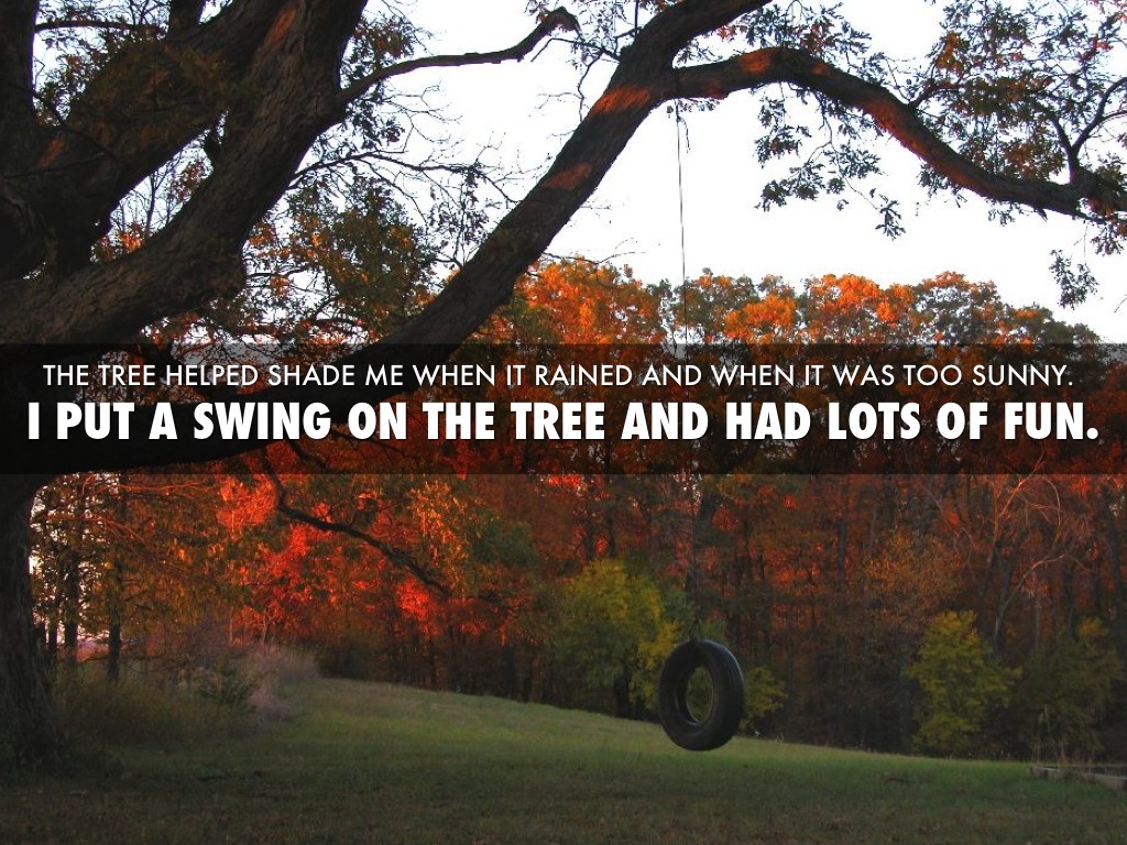 THE TREE HELPED SHADE ME WHEN IT RAINED AND WHEN IT WAS TOO SUNNY.