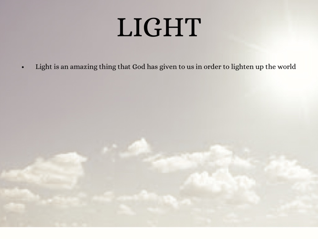• Light is an amazing thing that God has given to us in order to lighten up the world