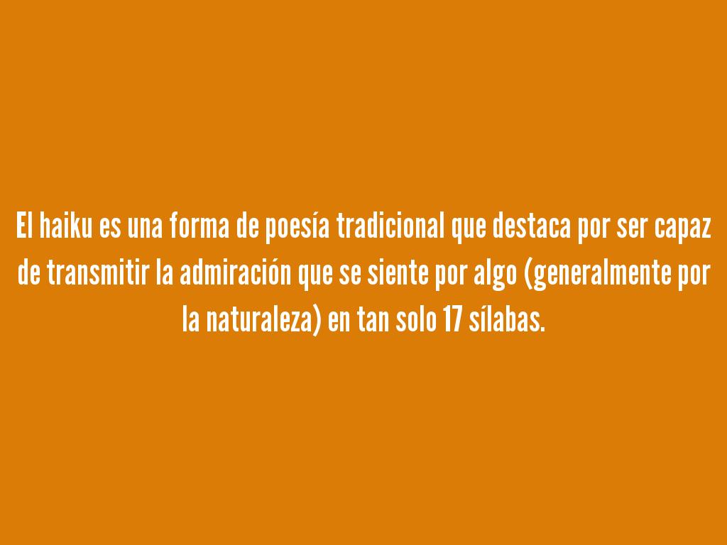 El haiku es una forma de poesía tradicional que destaca por ser capaz de transmitir la admiración que se siente por algo (generalmente por la naturaleza) en tan solo 17 sílabas.