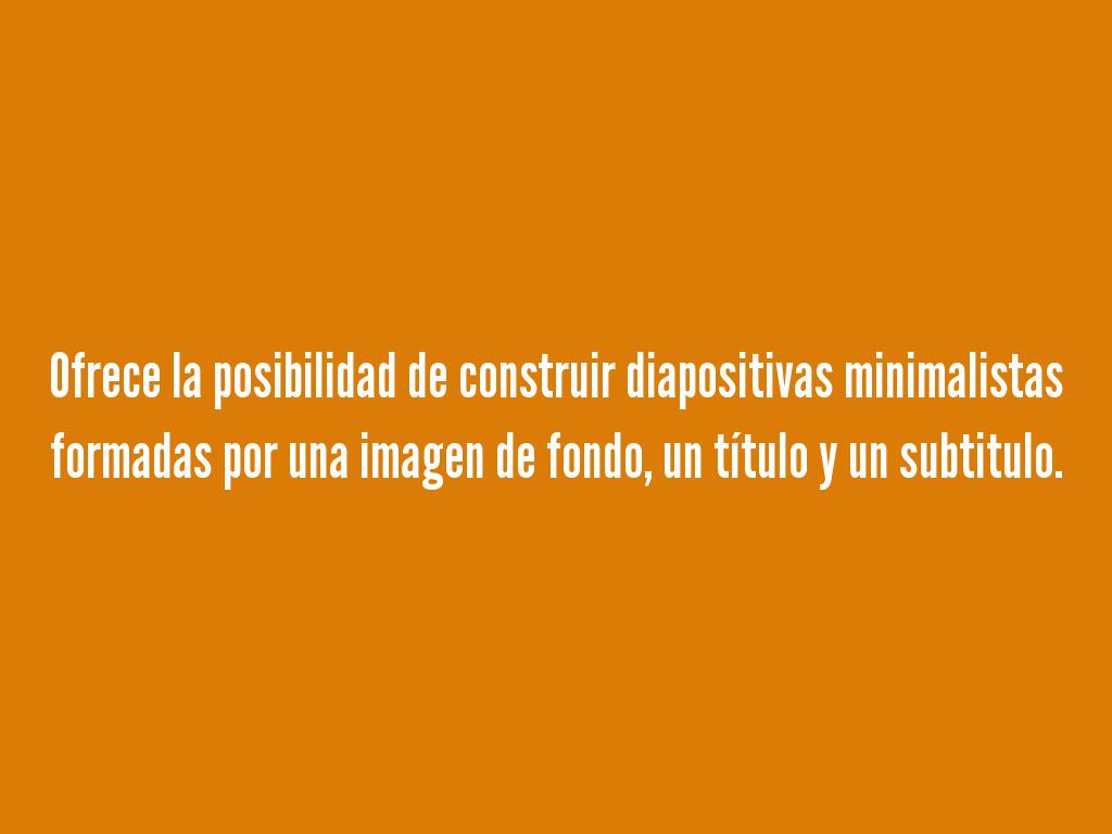 Ofrece la posibilidad de construir diapositivas minimalistas formadas por una imagen de fondo, un título y un subtitulo.