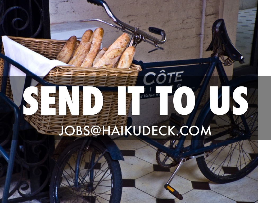 We’re looking for a cheerleader who can inspire the world to love Haiku Deck as much as we do. You have to absolutely LOVE connecting with and helping our community, even if that means answering the same questions over and over again, with patience and good humor.