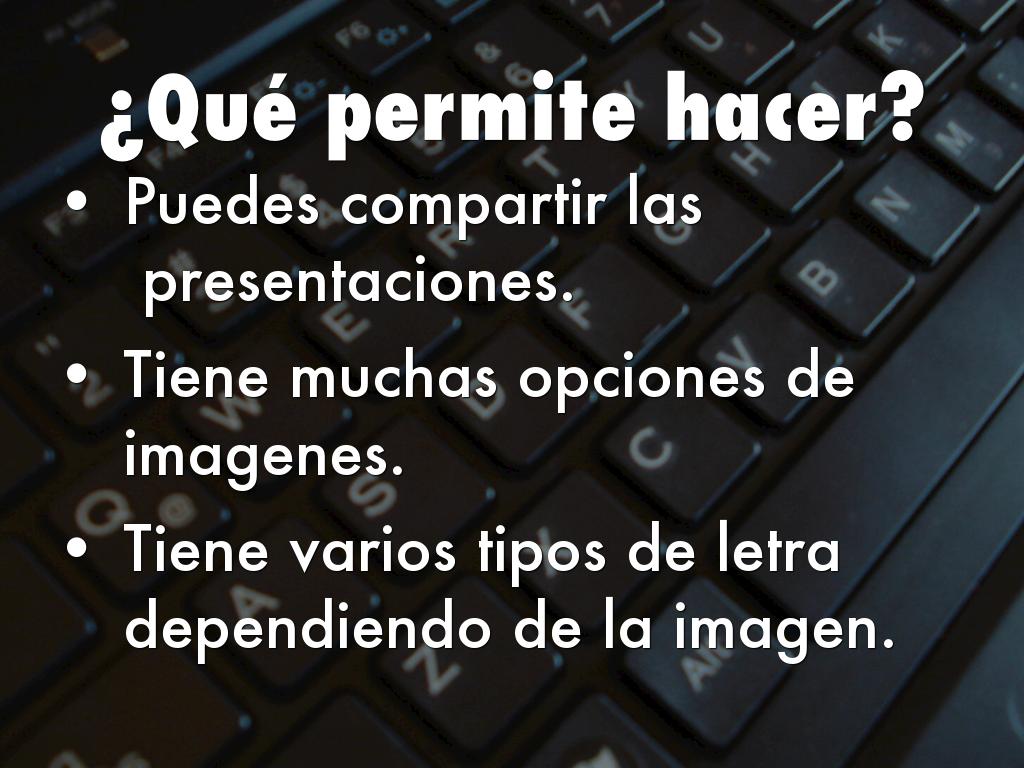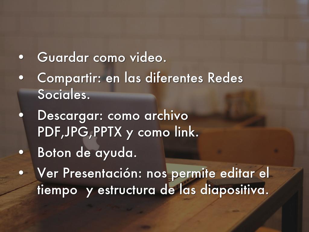 Es una herramienta que ofrece la posibilidad de construir diapositivas minimalistas, formadas por una imagen de fondo, un titulo y un subtítulo.