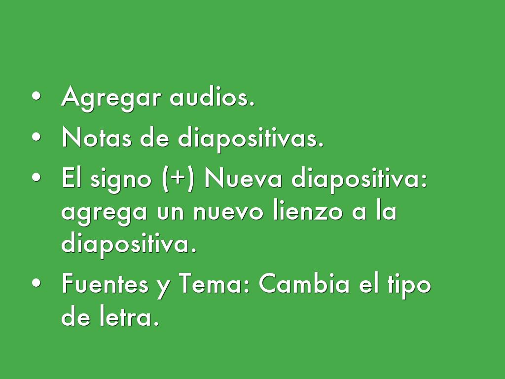 • El signo (+) Nueva diapositiva: agrega un nuevo lienzo a la diapositiva.