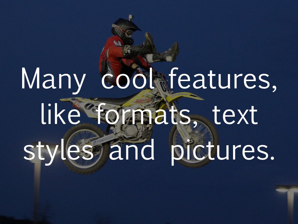 Many cool features, like formats, text styles and pictures.