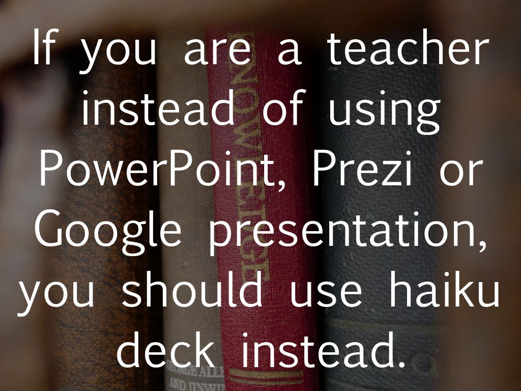 If you are a teacher instead of using PowerPoint, Prezi or Google presentation, you should use haiku deck instead.