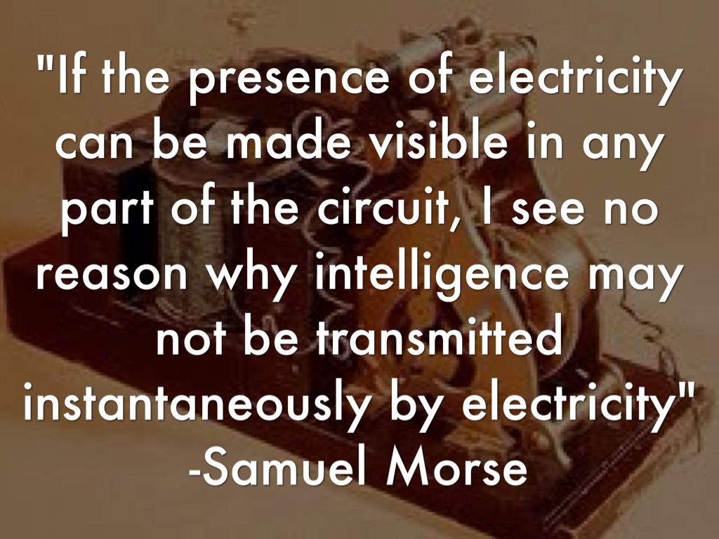 "If the presence of electricity can be made visible in any part of the circuit, I see no reason why intelligence may not be transmitted instantaneously by electricity"