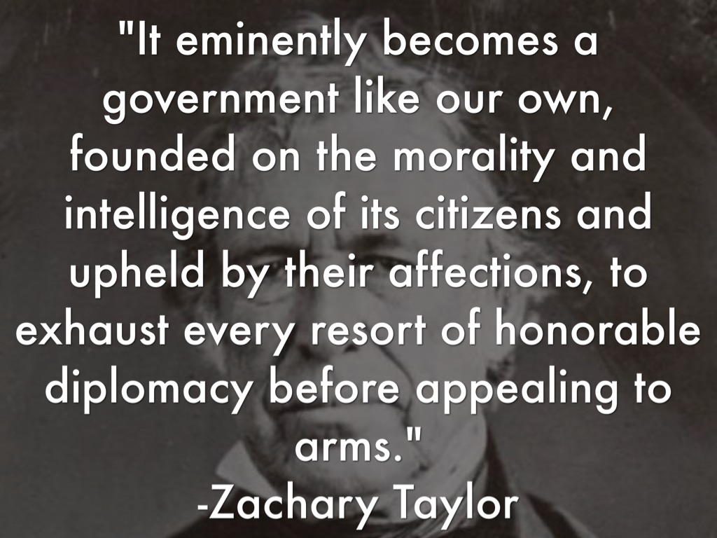 "It eminently becomes a government like our own, founded on the morality and intelligence of its citizens and upheld by their affections, to exhaust every resort of honorable diplomacy before appealing to arms."