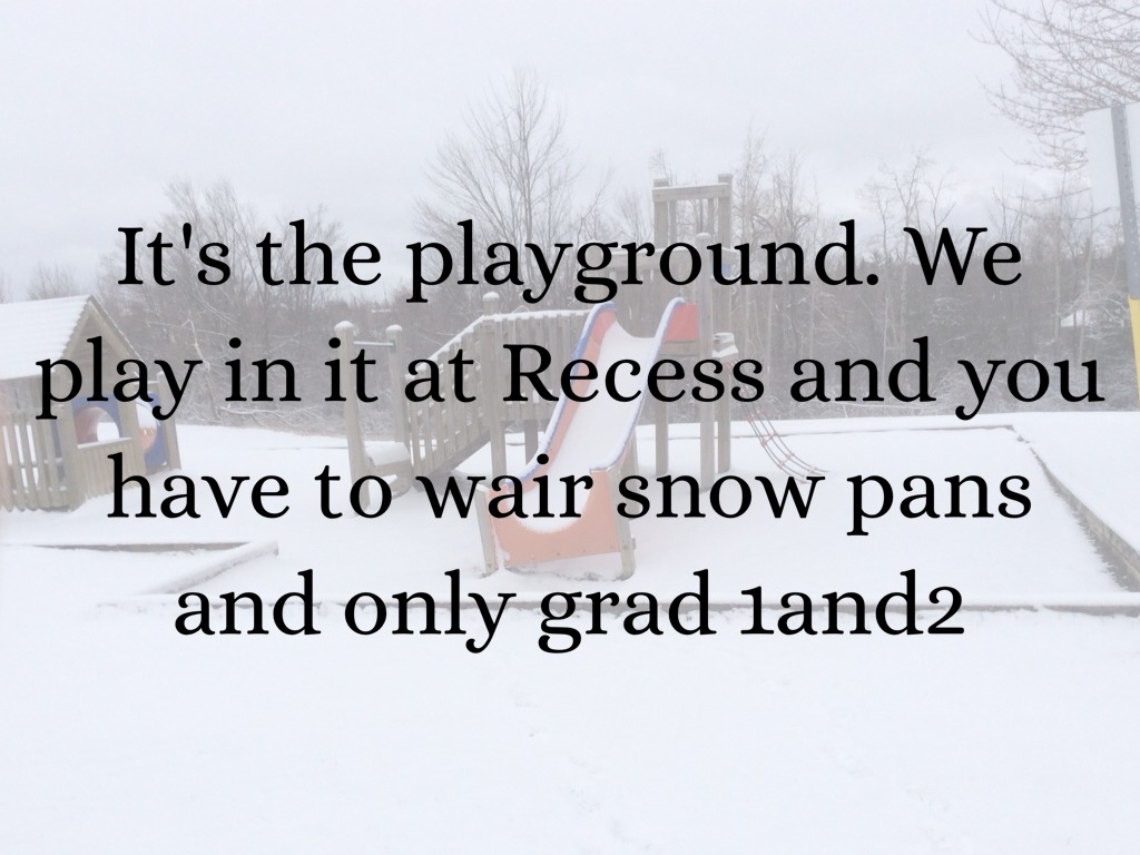 It's the playground. We play in it at Recess and you have to wair snow pans and only grad 1and2