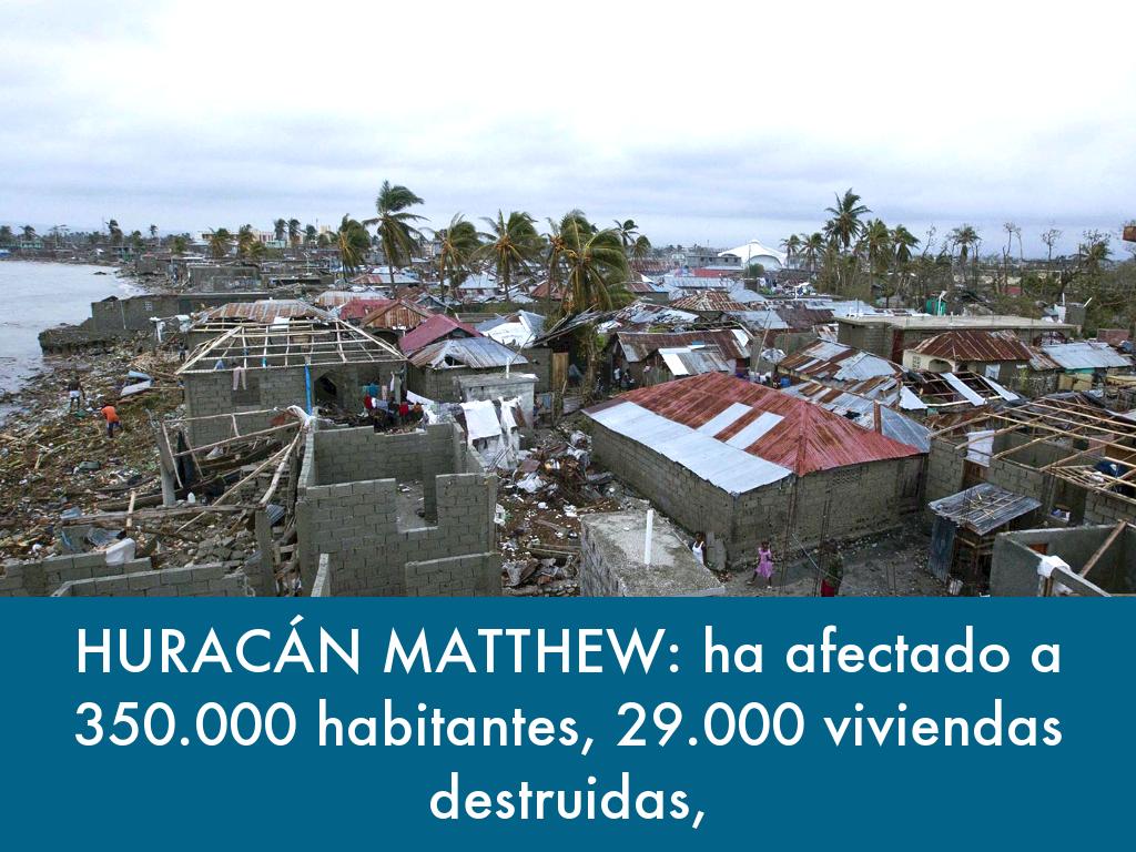 HURACÁN MATTHEW: ha afectado a 350.000 habitantes, 29.000 viviendas destruidas.