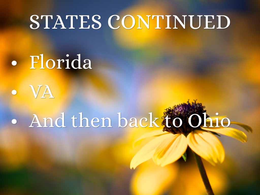 THE STATES IM GOING TO IS...