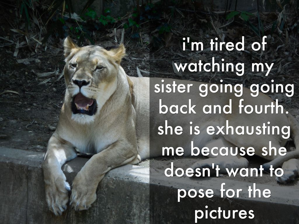i'm tired of watching my sister going going back and fourth. she is exhausting me because she doesn't want to pose for the pictures