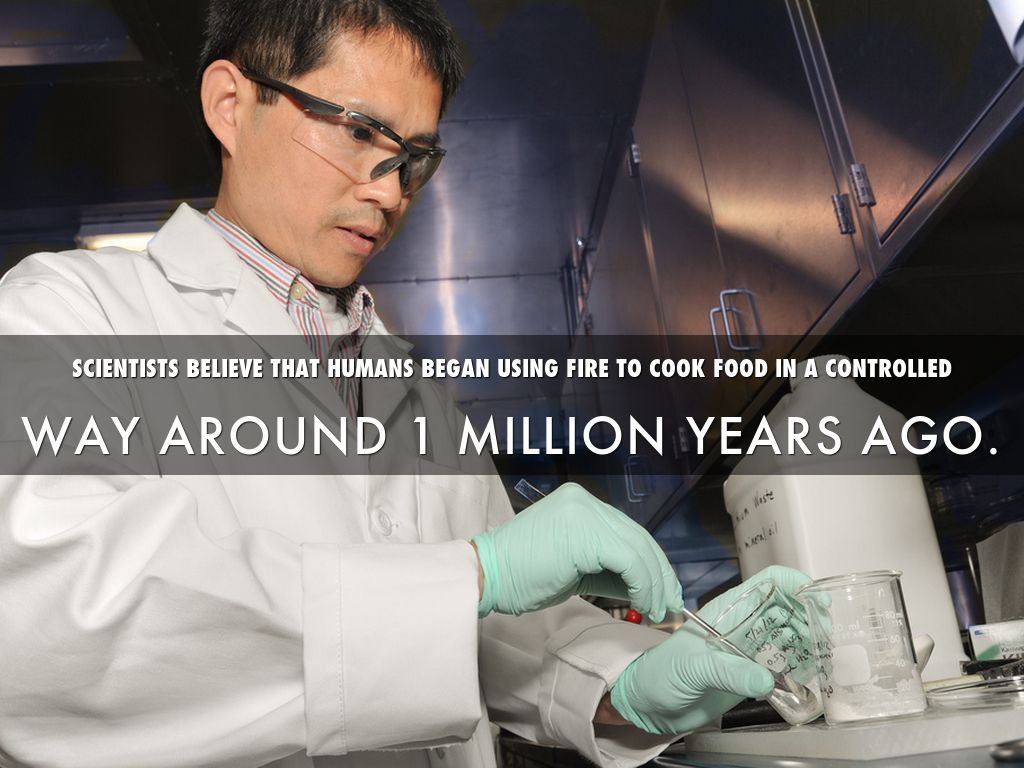 SCIENTISTS BELIEVE THAT HUMANS BEGAN USING FIRE TO COOK FOOD IN A CONTROLLED