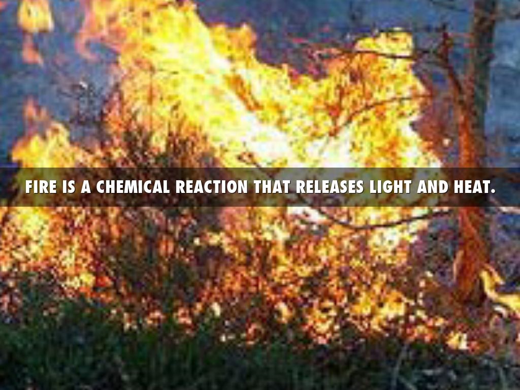 FIRE IS A CHEMICAL REACTION THAT RELEASES LIGHT AND HEAT.