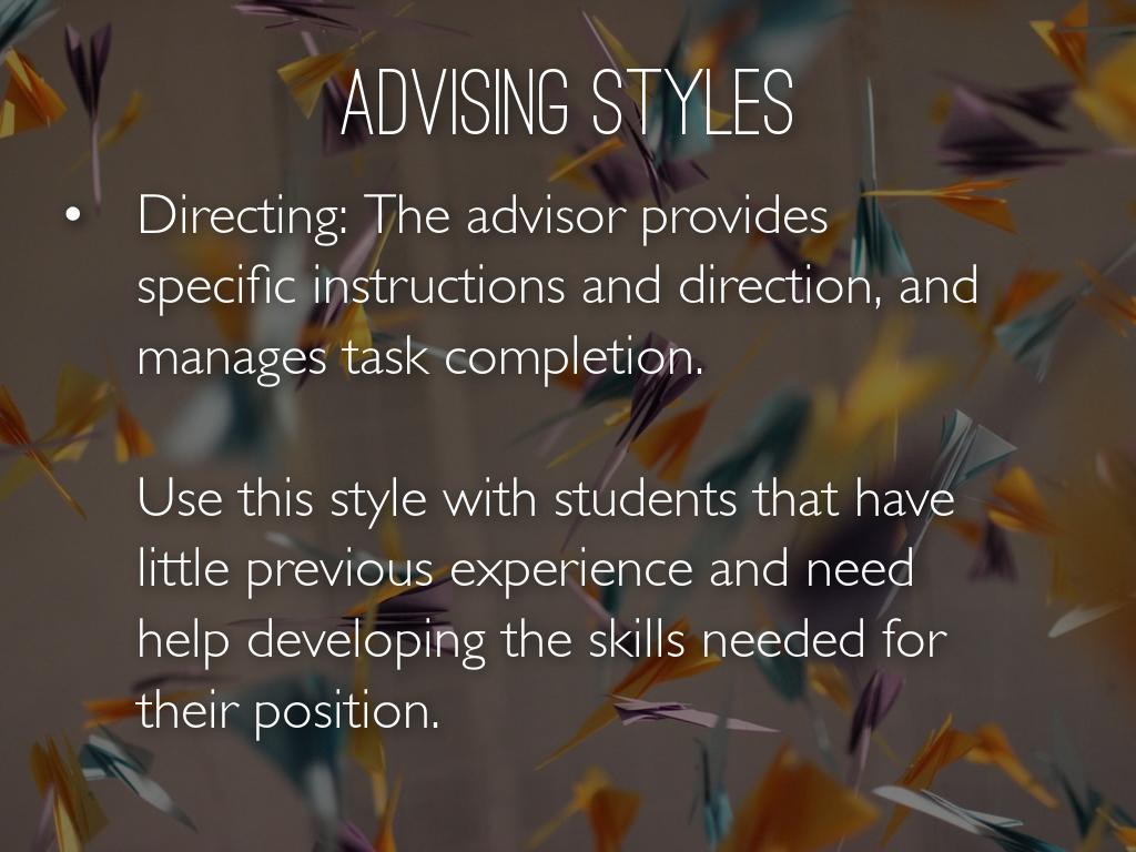 Directing: The advisor provides specific instructions and direction, and manages task completion.
